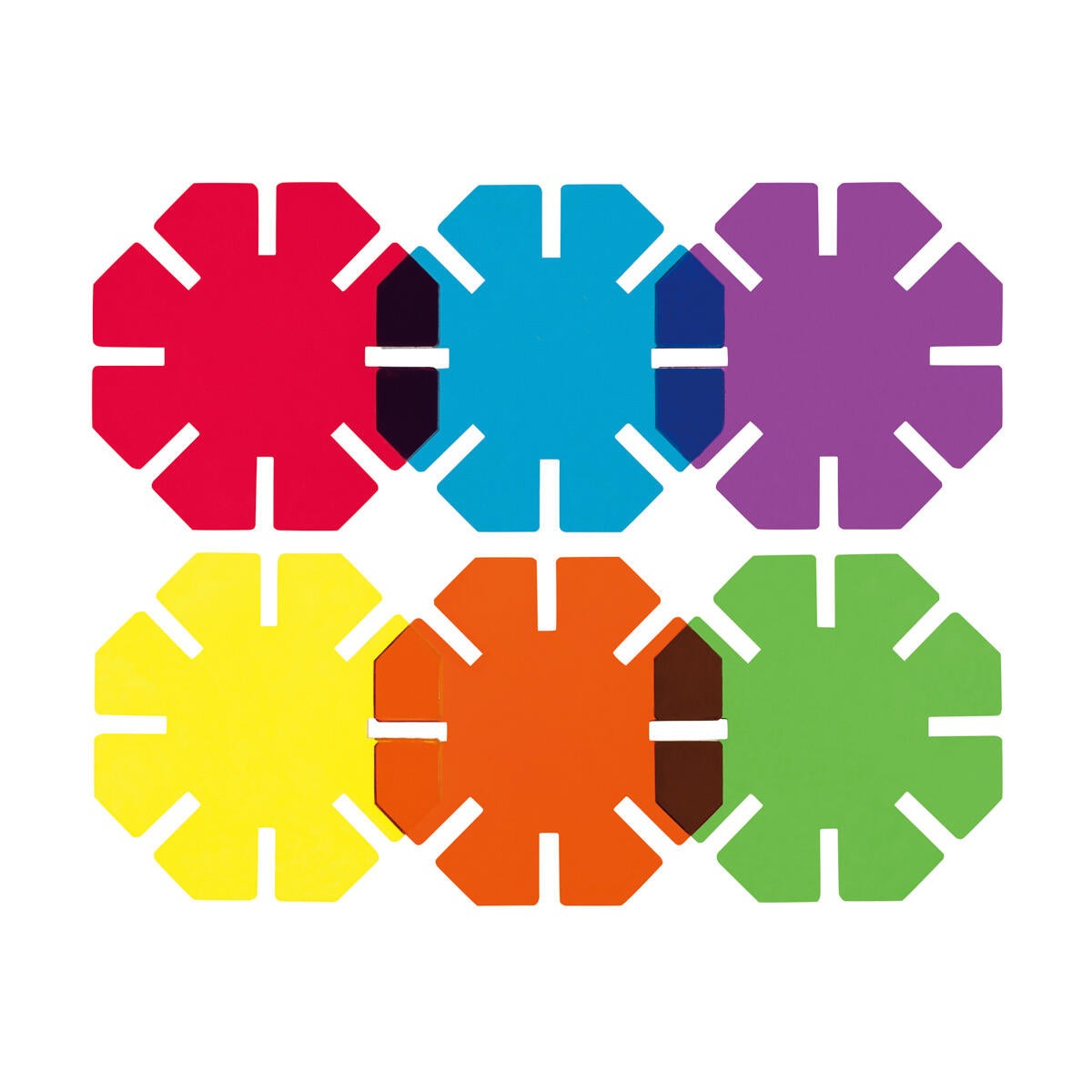 - 48 x translucent octagonal shapes (6 assorted bright colors)